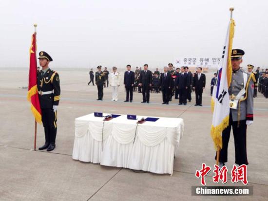 去年3月,韩国首次将437具中国军人遗骸归还中方。韩中双方此前商定,在发掘韩国战争阵亡者遗骸过程中如果发现中国人民志愿军遗骸,则于次年清明节前归还中方。
