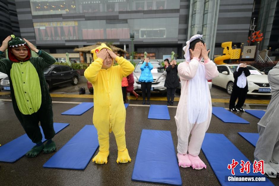 3月20日,世界睡眠日前夕,被誉为中国“睡眠先生”的唐堂带领众多市民来到长沙街头进行“睡大街”公益行为艺术展示。 杨华峰 摄