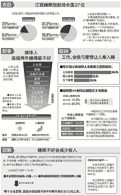 20日,记者从有关渠道获得中国医师协会等机构联合发布的《2015年中国睡眠指数报告》(以下简称《报告》)。“中国睡眠指数报告”已连续发布3年,覆盖30个省份的主要城市。