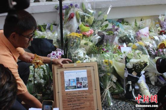 2015年3月24日,新加坡民众前往总统府悼念李光耀。图为一位民众展示李光耀生前照片。中新社发 赵胜玉 摄