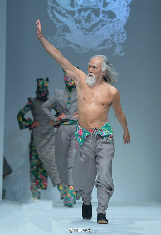 北京时间2015年3月25日,北京,中国国际时装周胡社光 2015秋冬发布。一直都作为中国时装周上的一大亮点,这次被大家称为“东北大棉袄”的秀利用对比反差及设计感的体现使人耳目一新,开场的哑剧表演很好的把大家带入了这次主题。在《重返二十岁》中饰演李大海的王德顺老爷子也为胡社光时装发布会开启序幕,点燃了现场气氛!