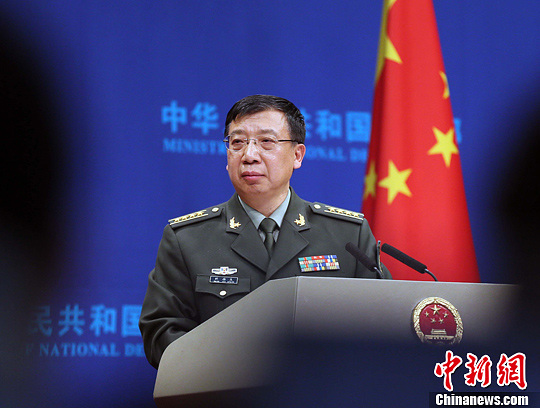 3月26日下午国防部举行例行记者会,国防部新闻事务局局长、新闻发言人耿雁生大校答记者问。中新社发 宋吉河 摄