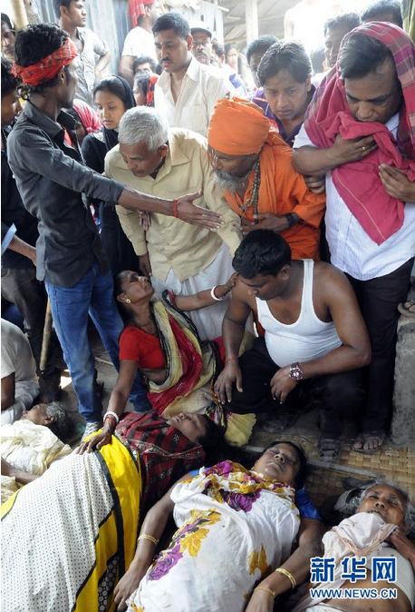 3月27日,在孟加拉国首都达卡附近的纳拉扬甘杰地区,人们辨认亲友的遗体。孟加拉国警方27日说,首都达卡附近当天发生一起踩踏事故,至少10人丧生,另有数十人受伤,死者包括7名妇女、3名儿童。新华社发(沙里夫·伊斯兰摄)