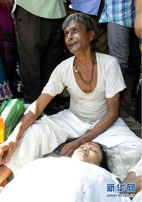 3月27日,在孟加拉国首都达卡附近的纳拉扬甘杰地区,一名男子在亲人的遗体旁痛哭。孟加拉国警方27日说,首都达卡附近当天发生一起踩踏事故,至少10人丧生,另有数十人受伤,死者包括7名妇女、3名儿童。新华社发(沙里夫·伊斯兰摄)