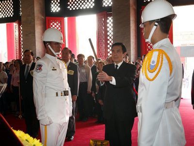 马英九(右2)4月2日在台北市圆山国民革命忠烈祠,出席遥祭黄帝陵典礼。来源:台湾“中央社”