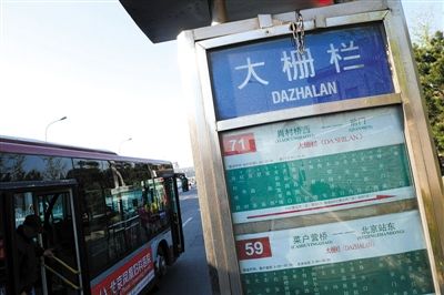 北京大栅栏公交站牌三种标注 游客叹傻傻分不清