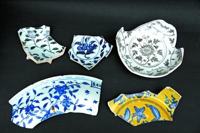 故宫南大库消防管道改造抢救性考古发掘出土的瓷器残件。