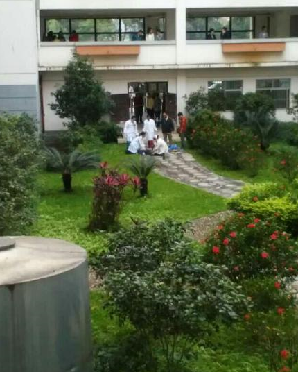 据广西民族大学学生爆料,今天18时左右,广西民族大学4坡11栋研究生宿舍楼一楼天井的花坛中发现一名男子,男子约35岁左右,穿深蓝色运动套装,身份不明,疑似坠楼。约18:20有学校医务人员正在抢救,警车已到现场,约18:30救护车已经赶到现场。男子现生死不明,原因不详。