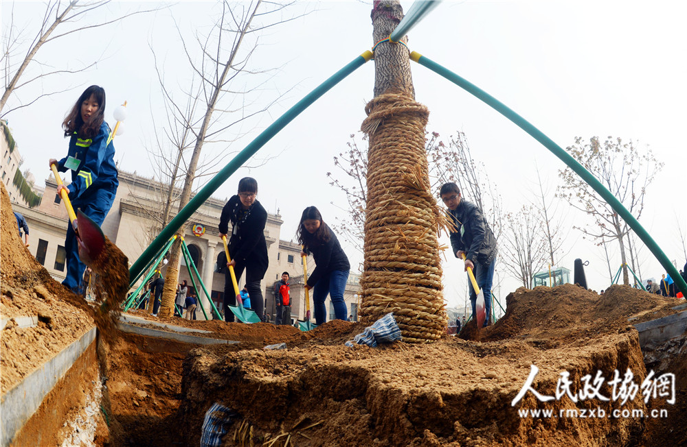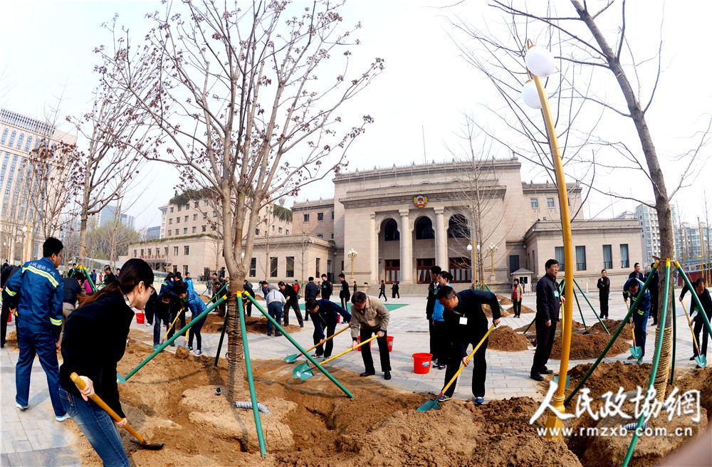 全国政协机关在全国政协礼堂南广场开展义务植树活动 人民政协报记者 贾宁 摄