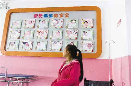 女子被警察带到医院让其接受检查,女子在等待的时候时不时的会望向墙上的新生婴儿的照片。