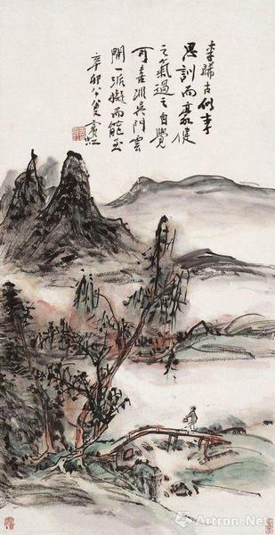 然而,黄宾虹的“用色”之道是什么?他的“设色山水”与“纯水墨的山水”之间有着怎样的区别,之间的联系与演变过程又是怎样的?杭州黄宾虹学术研究会顾问、著名美术评论家郑竹三和杭州黄宾虹学术研究会常务副会长赵军都认为:黄宾虹的色彩是从青铜器中来的。“因为黄宾虹在上??磐娴辏罅渴占嗤?,自觉不自觉地吸收了青铜器那种斑驳的颜色,即‘红斑绿锈’,所以他的山水画主要是这两种颜色,阴阳对比,红的是暖色,绿的是冷色。从学术上来讲,黄宾虹是对姐妹艺术的借鉴,既是对传统文脉的继承,更重要的是发现了新的色彩美,这和他的生活、经历都有联系,所以说一个人离不开自然,这也是黄宾虹的智慧,他吸收了可用的东西。” 杭州黄宾虹学术研究会顾问、著名美术评论家郑竹三先生解释说。