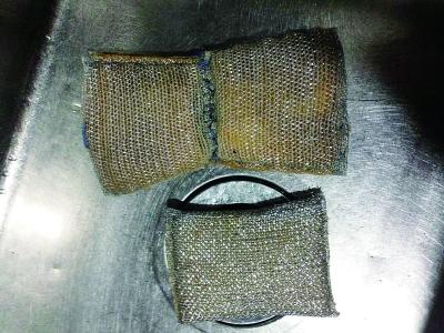 拼接成的百洁布擦完垃圾桶后1分钟就拿来擦盘子 本报暗访组