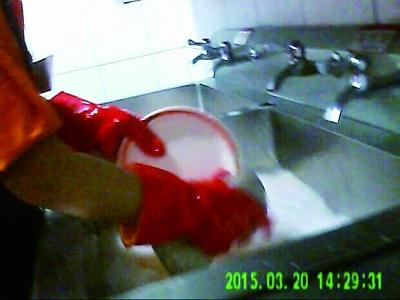 记者暗访三个月 该店后厨水池混用 同一百洁布擦完垃圾桶擦盘子 不戴手套包餐具 食药监局接受举报将调查
