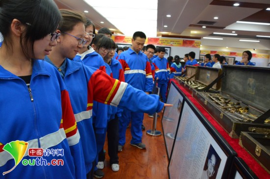 北京五中师生在展览馆参观。见习记者 苏贺 摄