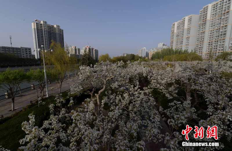 图为新疆库尔勒市孔雀河畔拍摄的梨园。 确·胡热 摄