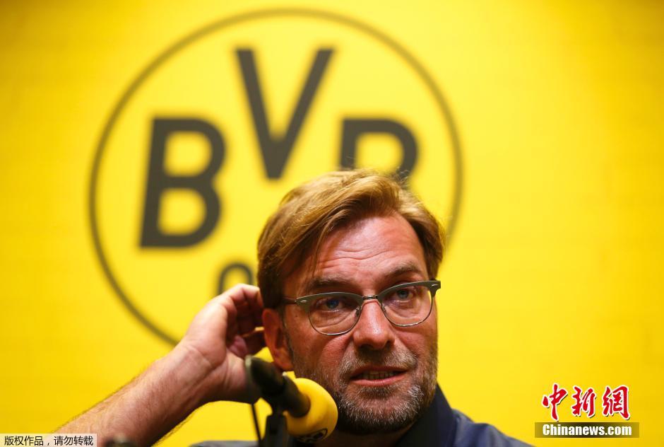 图为克洛普在发布会上,他离开多特的理由是这个糟糕的赛季让他身心俱疲,而他的继任者很可能是他曾在美因茨的后辈图赫尔。
