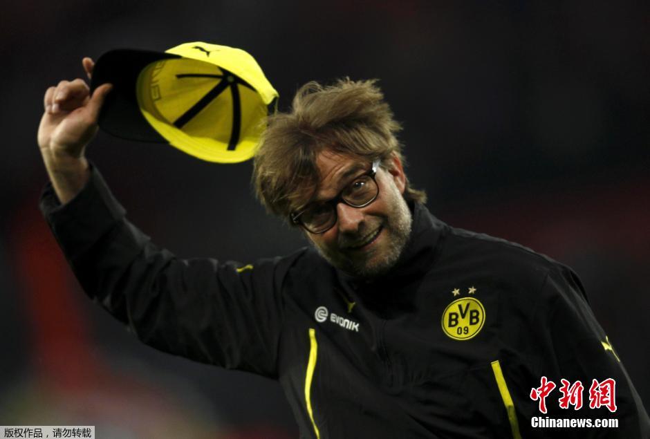 图为克洛普资料图??寺迤兆?008年接手多特,他让这支老牌豪门重现昔日荣光,带领球队两夺德甲冠军,1次德国杯,2次德国超级杯,并且在2013年闯入欧冠决赛。
