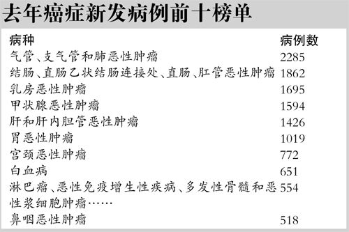 在列前10位的恶性肿瘤排位中,肺癌继续“蝉联”深圳恶性肿瘤发病“头号杀手”。肺癌(含气管、支气管癌)依然是头号杀手,去年新发病例达到2284例。