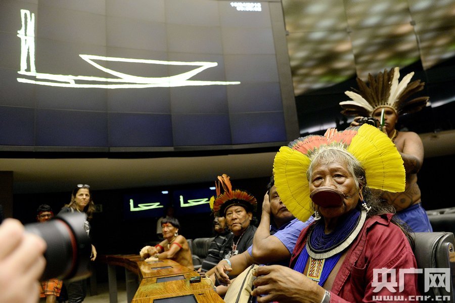 当地时间2015年4月16日,巴西巴西利亚,巴西原住民参加国民议会。