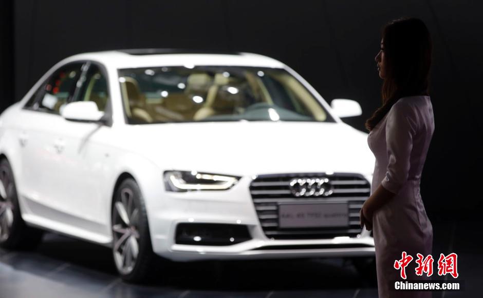4月20日,2015上海国际汽车工业展览会开幕。由于今年车展取消了车模展示,因此部分厂商将原来的职业模特稍加培训,转型成礼仪小姐和销售顾问来招揽观众。 汤彦俊 摄