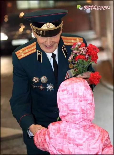 每年这个时候,莫斯科红场的观礼台上端坐着3000多名卫国战争老兵,他们那满头银发和胸前一排排闪亮的勋章和奖章构成了一道绚丽的风景。这些老战士的出场总是格外引人注目。无论他们走到哪里,都会受到前呼后拥的欢迎。很多年轻人和在家长带领下的孩子将鲜花献给他们,表达年轻一辈对英雄们的敬意。