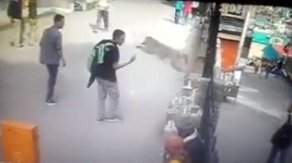 视频中,一只顽皮的猴子先是跳上路边的台子,看着行人经过。随后,这只猴子注意到一名少年也在盯着自己,并对它竖起中指。显然,这名少年认为此举不会让自己受到伤害。