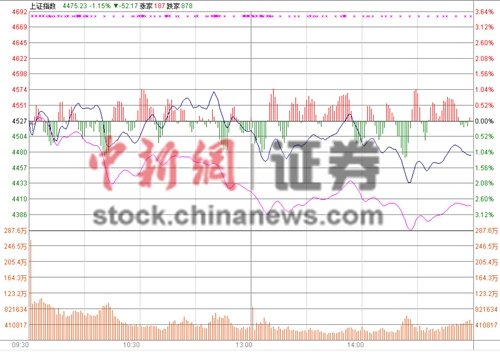 截至收盘,上证综指报收4476.21点,跌51.19点,跌幅1.13%,成交1.06万亿;深成指报收14707.3点,跌102.17点,跌幅0.69%,成交6405亿元。(中新网证券频道)
