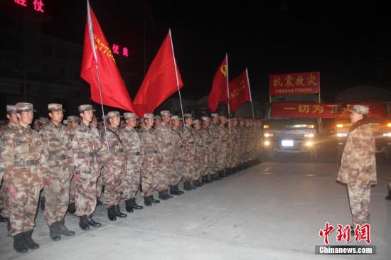 4月25日晚,西藏军区日喀则军分区抢险救援队开赴樟木。当日,尼泊尔发生8.1级地震,波及西藏多地。(西藏军区日喀则军分区供图)