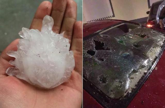 江苏多地冰雹大如鸡蛋 砸烂汽车挡风玻璃