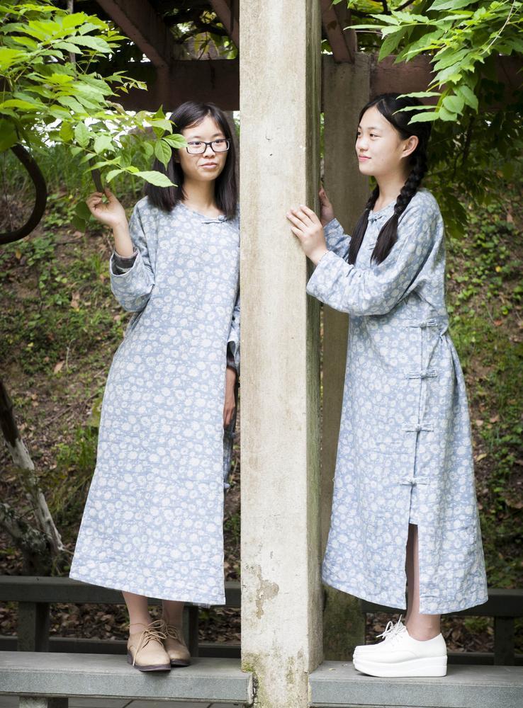 4月28日,浙江台州,温岭市新河中学的高三学生,穿着改版旗袍,拍摄毕业照。这种旗袍一改传统旗袍修身束体的式样,配上蓝色碎花仿佛床单裹在身上。