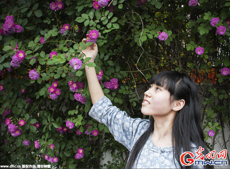 4月28日,浙江台州,温岭市新河中学的高三学生,穿着改版旗袍,拍摄毕业照。这种旗袍一改传统旗袍修身束体的式样,配上蓝色碎花仿佛床单裹在身上。
