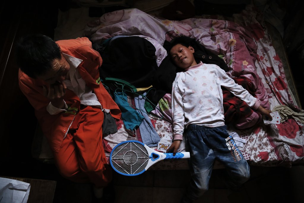 一间15平米的储藏室,一份普通的工作,一月1300元的工资,阜阳老人宁光富带着12岁的智障孙子就这样过着,俩人几乎寸步不离。4月27日,江淮晨报、江淮网记者采访时看到,祖孙俩相互依偎,老人用扑克牌教孩子算数,用肢体语言教孩子文字。而老人最大的愿望,是让孙子尽快得到康复治疗,让他能够自食其力。
