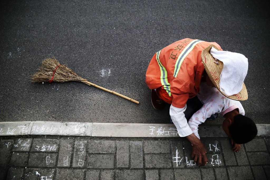 关键词:环卫工爷爷 智障孙儿 马路黑板