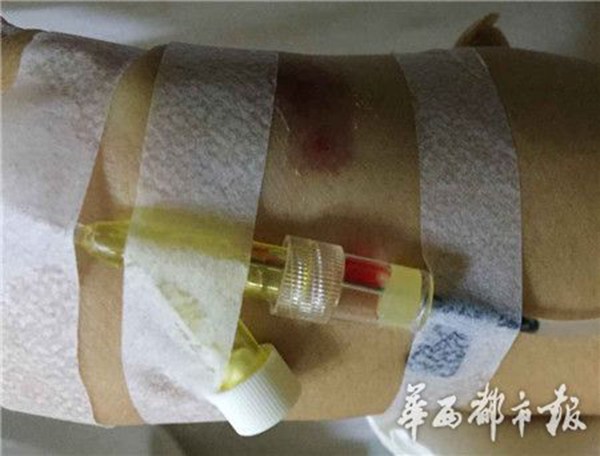 “我以为他下车来找我理论,没想到他上来就拉我车门。”卢小姐说,在男子殴打自己的全程里,一个字都没有说,“他把我从车上拖下来,就开始打我。我当时伸手挡,还求饶,他不理我,一直打我。”卢女士身上的伤口。