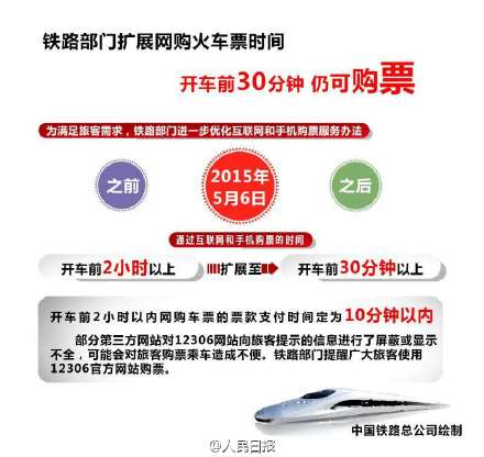 @人民日报:【网购火车票时间调整啦!发车前30分钟都能买】6日起,12306网站及“铁路12306”客户端购票时间由不晚于开车前2小时调整为30分钟。即只要不晚于所需乘坐列车开车前30分钟,均可通过12306网站和客户端购票。为不影响其他旅客,列车开车前2小时内所购车票请于10分钟内完成支付。(陆娅楠)
