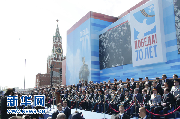 5月9日,俄罗斯在莫斯科举行盛大庆典,隆重纪念卫国战争胜利70周年。国家主席习近平同来自世界约20个国家和地区以及国际组织领导人出席。新华社记者鞠鹏摄