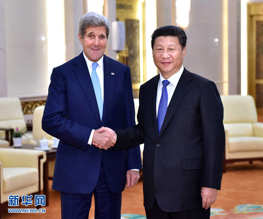 克里表示,“我同意您对美中关系的评价。我们两国关系十分重要。美中一方面开展了广泛合作,向世界展示出两国在应对重大国际地区问题上的重要作用;另一方面,双方能够成熟地管控好两国之间的分歧。两国在应对气候变化、埃博拉疫情、伊朗核问题等领域保持了密切协调与合作,双方还可以进一步拓展合作的广度和深度。”
