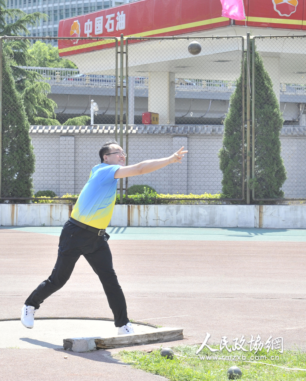 5月20日上午,全国政协机关第九届职工运动会在北京月坛体育场开幕。图为男子铅球比赛。人民政协网记者 姜贵东摄