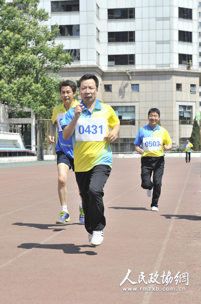5月20日上午,全国政协机关第九届职工运动会在北京月坛体育场开幕。图为男子800米比赛现场。人民政协网记者 姜贵东摄