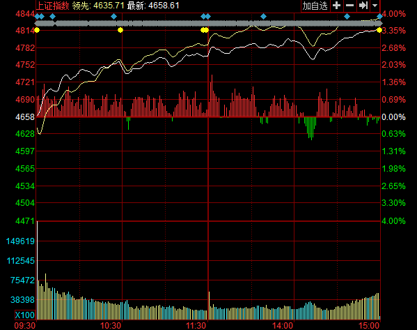 截至收盘,沪指报4813.80点,上涨156.20点,涨幅3.35%,成交10793亿元;深成指报16351.06点,上涨305.26点,涨幅1.90%,成交9537亿元;创业板指报3467.92点,下跌48.71点,跌幅1.39%,成交1754亿元。