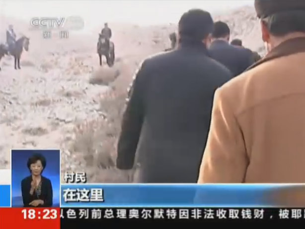 图为央视新闻截屏画面,新疆警察和民众一同搜山抓暴恐分子。