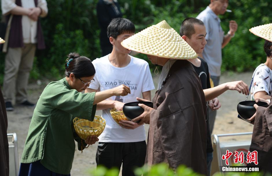 5月25日适逢农历四月初八释迦牟尼佛诞辰吉日,浙江杭州佛教界的630名头戴斗笠,身披衲衣,手持钵盂,脚踏芒鞋的行脚僧人,开始践行佛教传统,持钵接受信众的供养。托钵源自于佛教教主释迦牟尼在世时的制度,出家人必须要去托钵乞食,至今南传佛教国家(包括斯里兰卡、缅甸、泰国等)都遵循这一旧制。中新社发 李晨韵 摄