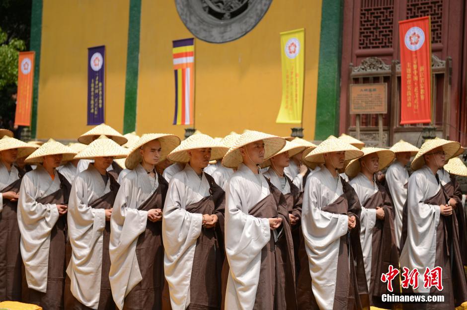 5月25日适逢农历四月初八释迦牟尼佛诞辰吉日,浙江杭州佛教界的630名头戴斗笠,身披衲衣,手持钵盂,脚踏芒鞋的行脚僧人,开始践行佛教传统,持钵接受信众的供养。托钵源自于佛教教主释迦牟尼在世时的制度,出家人必须要去托钵乞食,至今南传佛教国家(包括斯里兰卡、缅甸、泰国等)都遵循这一旧制。中新社发 李晨韵 摄