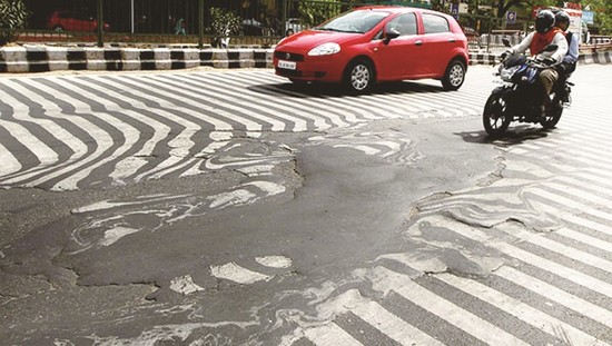 《印度斯坦时报》的一张照片中,新德里一段路面被晒化,白色的人行横道标志线扭曲变形,甚至被融化的沥青掩盖。东南部一些地区的最高气温甚至达到48℃。