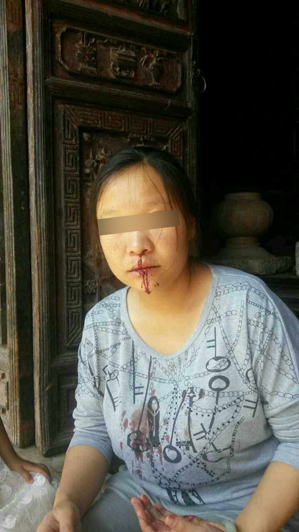 其中图片显示,当事女子鼻子流血,身上也有血迹。