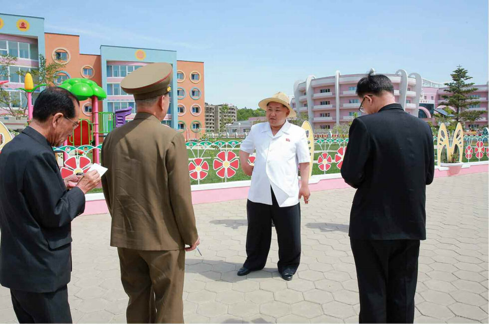 金正恩戴草帽视察竣工育儿院 赞“越看越漂亮”