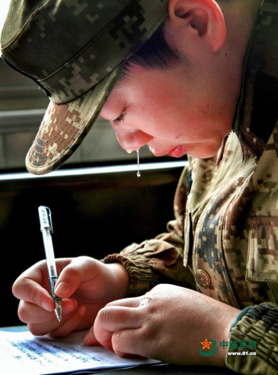 进军营,你写第一封家书时难免会想家流泪。刘志云 摄