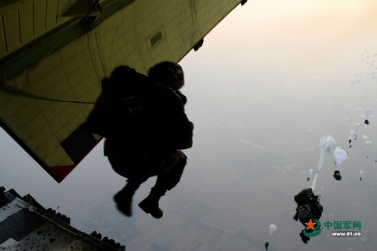 你会克服各种恐惧,跳伞时面向大地,纵身一跃。图为空降兵跳伞。王海涛 摄