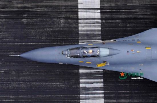 所有的起飞离不开千百次的练习。图为“金头盔”蒋佳冀驾驶战机奔向起飞线,宛如一把出鞘利剑。刘应华 摄