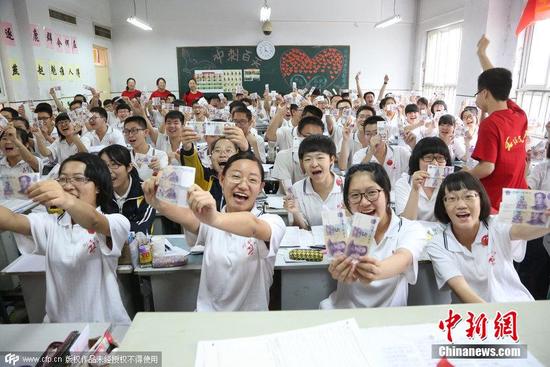 6月3日,河北衡水二中为每位备战高考的高三学生发放了两张5元崭新连号人民币留作纪念。十元钱代表“十全十美”,连号则代表“顺顺利利”,这是该校为多年来考前减压活动之一,也是送给考生们的真诚祝愿。收到学校的“福利”和祝福,考生们开心不已。